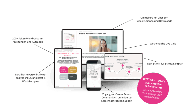Die Anmeldung für Career Restart öffnet wieder im März 2026 – aber nur für wenige Tage. Nutze die Zeit bis dahin und hol Dir meinen Career Restart Guide für 0€.